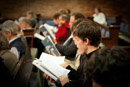 Singers and orchestra members rehearse and perform the work at St Andrew's Uniting Church, Brisbane