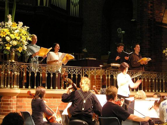 Gallery Afternoon rehearsal with choir, soloists and the Sinfonia of St Andrews (Click each picture for a larger image). Our soloists in rehearsal Click on the thumbnails below to see a