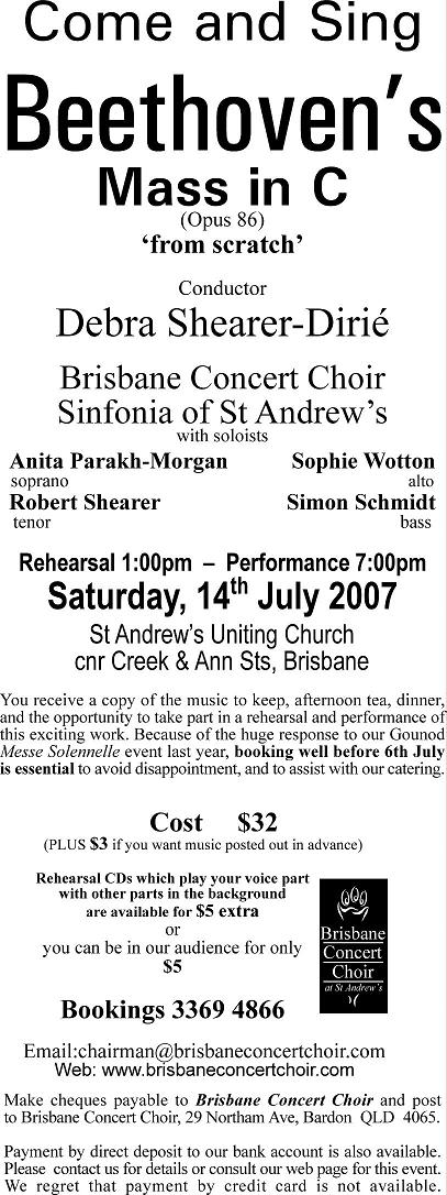 Beethoven Mass in C 'from scratch' Flyer | Registration Form | Frequently Asked Questions | Details From 1.00pm Saturday, 14th