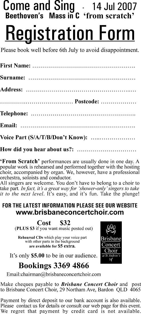 ©Copyright Brisbane Concert Choir 2001-2007. Email Webmaster. Logo design Gary Fredericks. Email List Policy Statement |