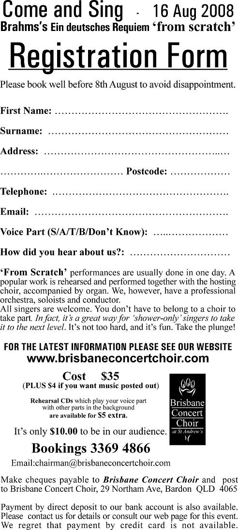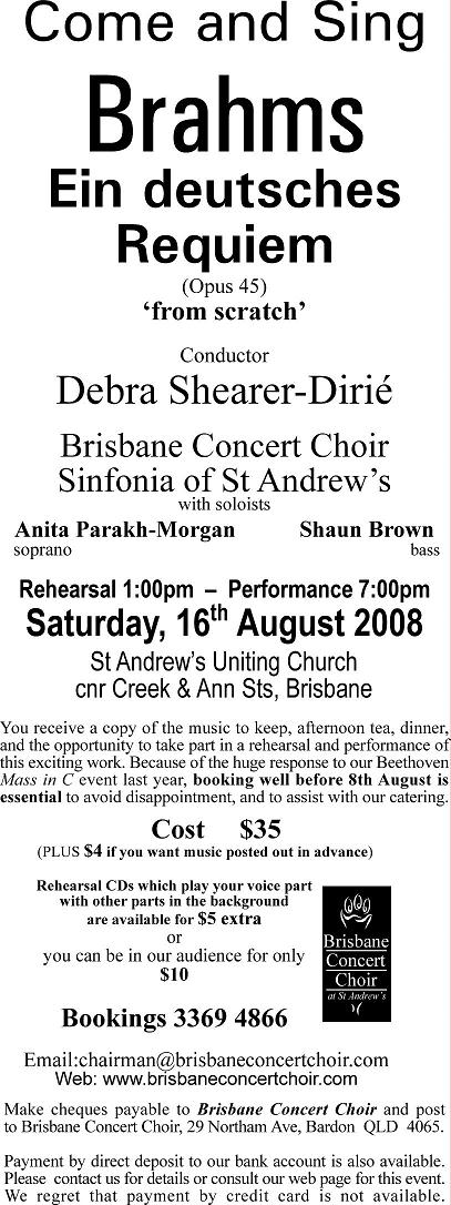 Brahms - Ein deutsches Requiem 'from scratch' Flyer | Registration Form | Frequently Asked Questions | Details | How to Pay From 1.00pm Saturday, 16th