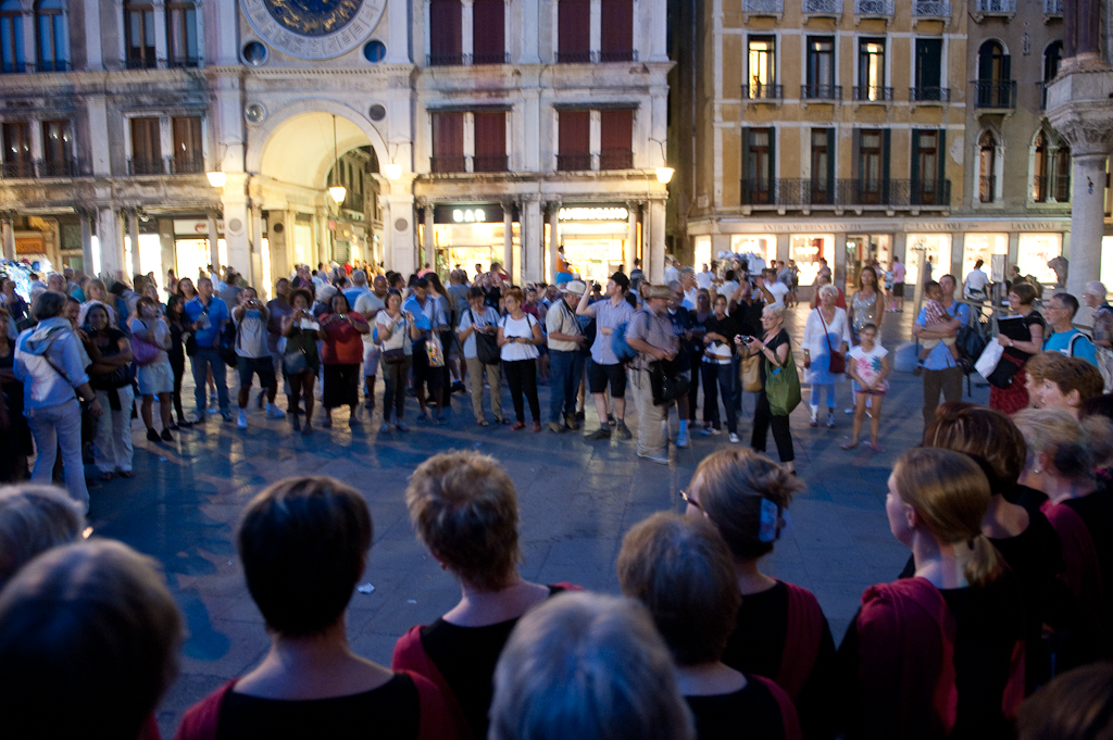 A small but appreciative audience came to listen to us on this very hot night, after which we headed off again to complete our trek across the island of Venice.